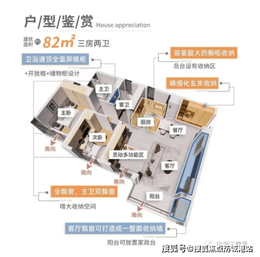 2. 82㎡户型:朝向为西南、东南向,杜绝外来人员随便进出;