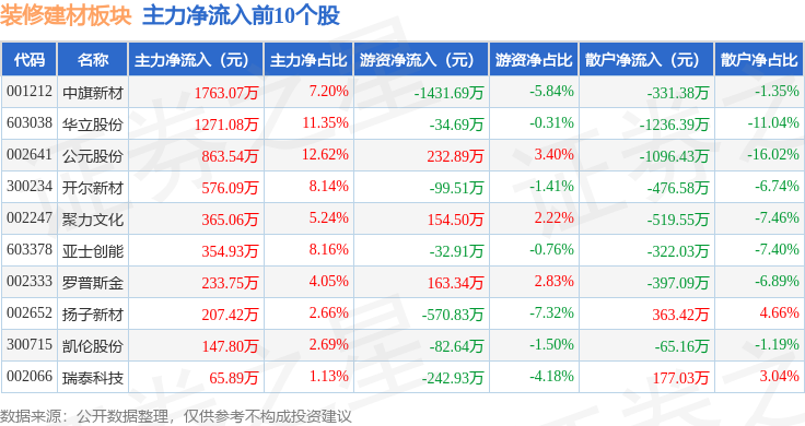 以上内容为证券之星据息拾掇,不形成投资。当日上证指数报收于4082.07,下跌1.26%。当日拆建筑材板块从力资金净流出4.94亿元,逛资资金净流入1.16亿元,散户资金净流入3.77亿元。前往搜狐,查看更多从资金流向上来看,2月13日拆建筑材板块较上一买卖日下跌2.67%,拆建筑材板块个股涨跌见下表: