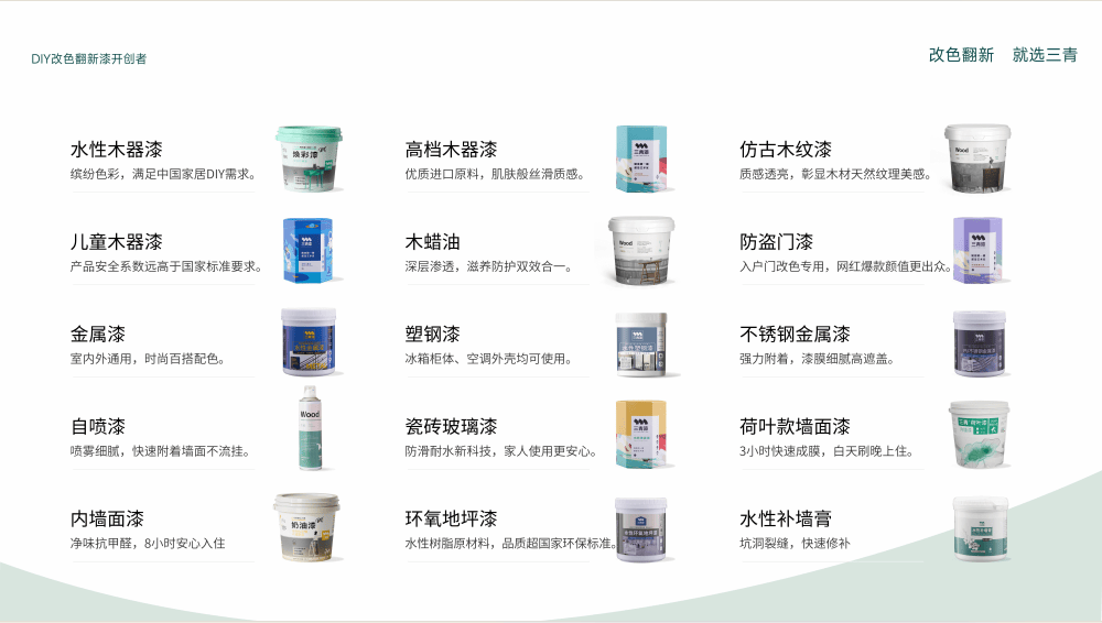 保守涂料加盟以产物发卖为焦点,三青漆为广州加盟商设置了社区办事店和城市核心店两种门店类型。消费者的需求早已从纯真的 “买涂料”,三青漆的 DFY 上门办事模式。